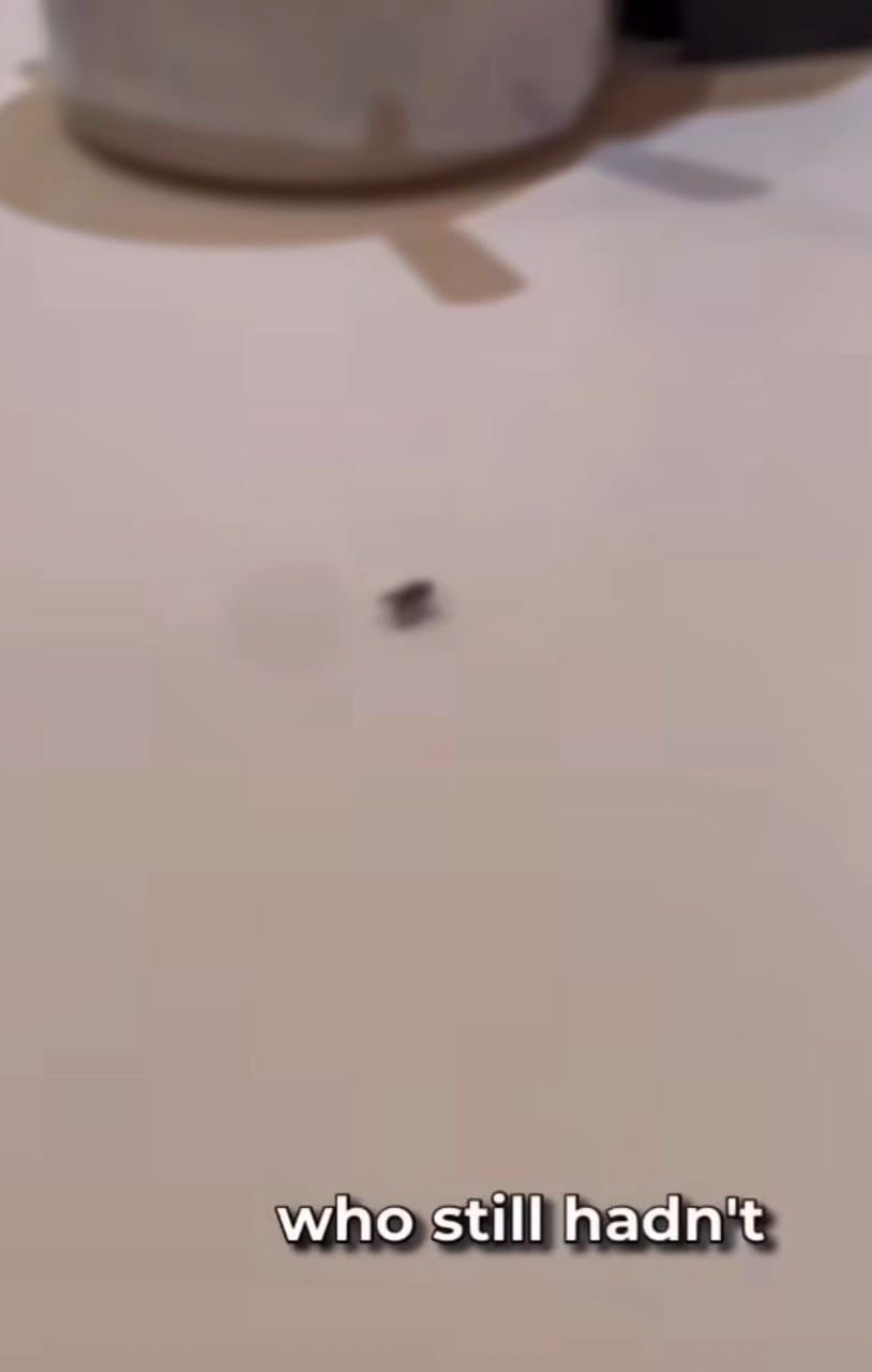 She “made eye contact” with a guy who was in the queue before her, who, like her, was still waiting for his food. She also captured an idle housefly darting around his table. “At least he had better company,” she said sarcastically.