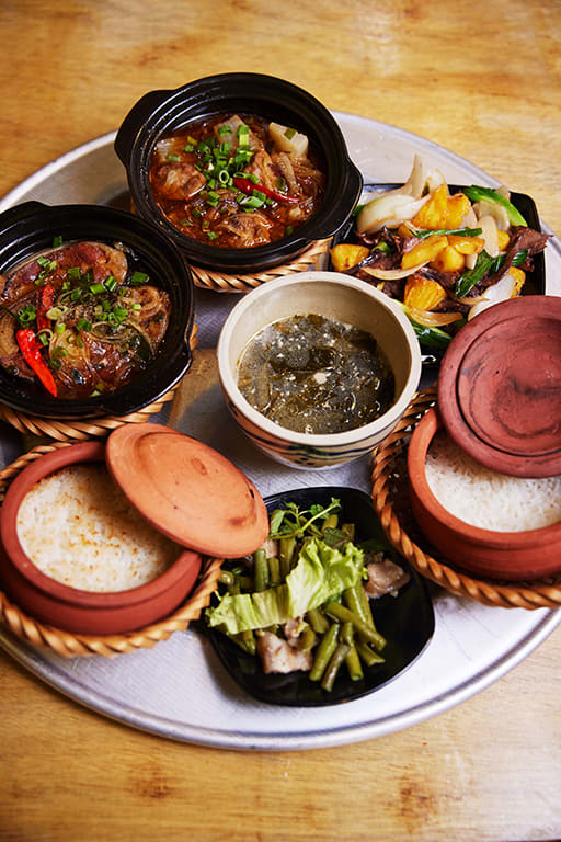 He lets customers choose if they want “crispy or soft rice.” The crispy rice is similar to Korean-style dolsot rice, cooked long enough for the grains to turn golden and crusty at the bottom. The claypot rice is served with a variety of pork, beef, chicken and fish side dishes, which Tuan sells in sets instead of a la carte due to a lack of manpower.