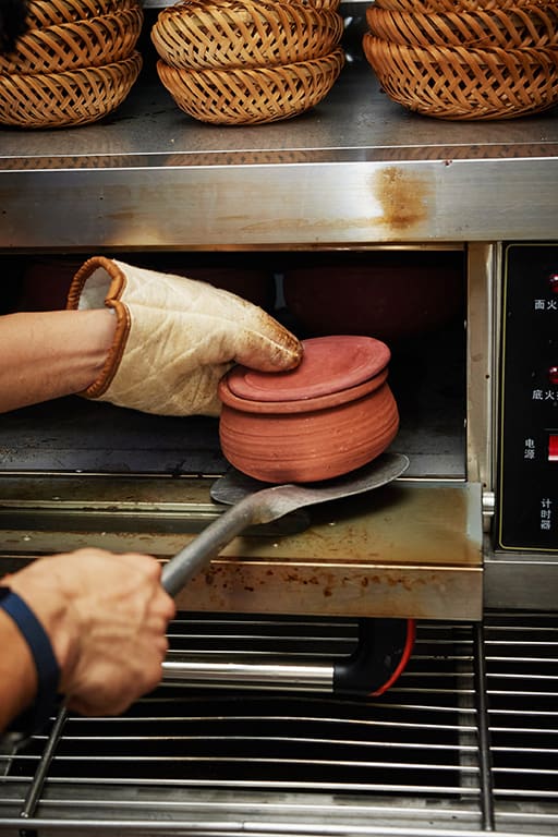 Com nieu is traditionally served in covered terracotta pots, which Tuan imports from Vietnam in various sizes. The long grains are poured into the pot with water and “a bit of coconut and salt” for flavour before being cooked in a commercial oven at 300 degrees Celsius for 45 minutes.