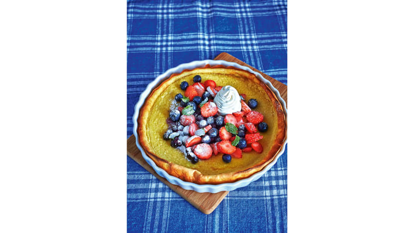 Whatever its etymology, the Dutch baby — essentially a taller, airier pancake baked in the oven instead of cooked on a stove — gets our vote for the fact that it’s like a cross between a poufy Yorkshire pudding, soufflé and pancake (and when it’s deflated, like a thicker crepe). You can enjoy it straight from the pan, which means less washing up. Our recipe is relatively simple: just blitz everything in a blender and bake. Traditionally, the Dutch baby is eaten with just icing sugar and a spritz of lemon juice. Here, we topped it with berries and whipped cream, but you can crown it with anything your want, like bananas and chocolate sauce. Despite its large size, this fluffy baby is surprisingly light on the stomach. It’s typically baked in a cast iron skillet because it offers better heat distribution. But if you don’t have one, just use a regular baking dish, like we did.
