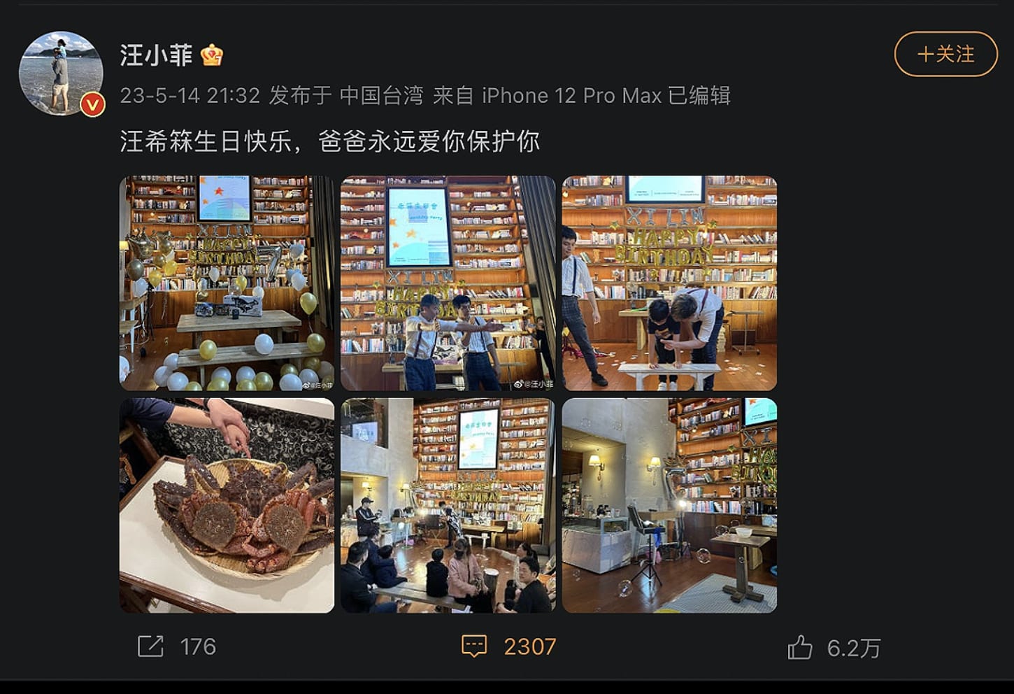 In his post, Xiaofei didn't share any pictures of the kids, and only showed photos of the birthday venue and set up.