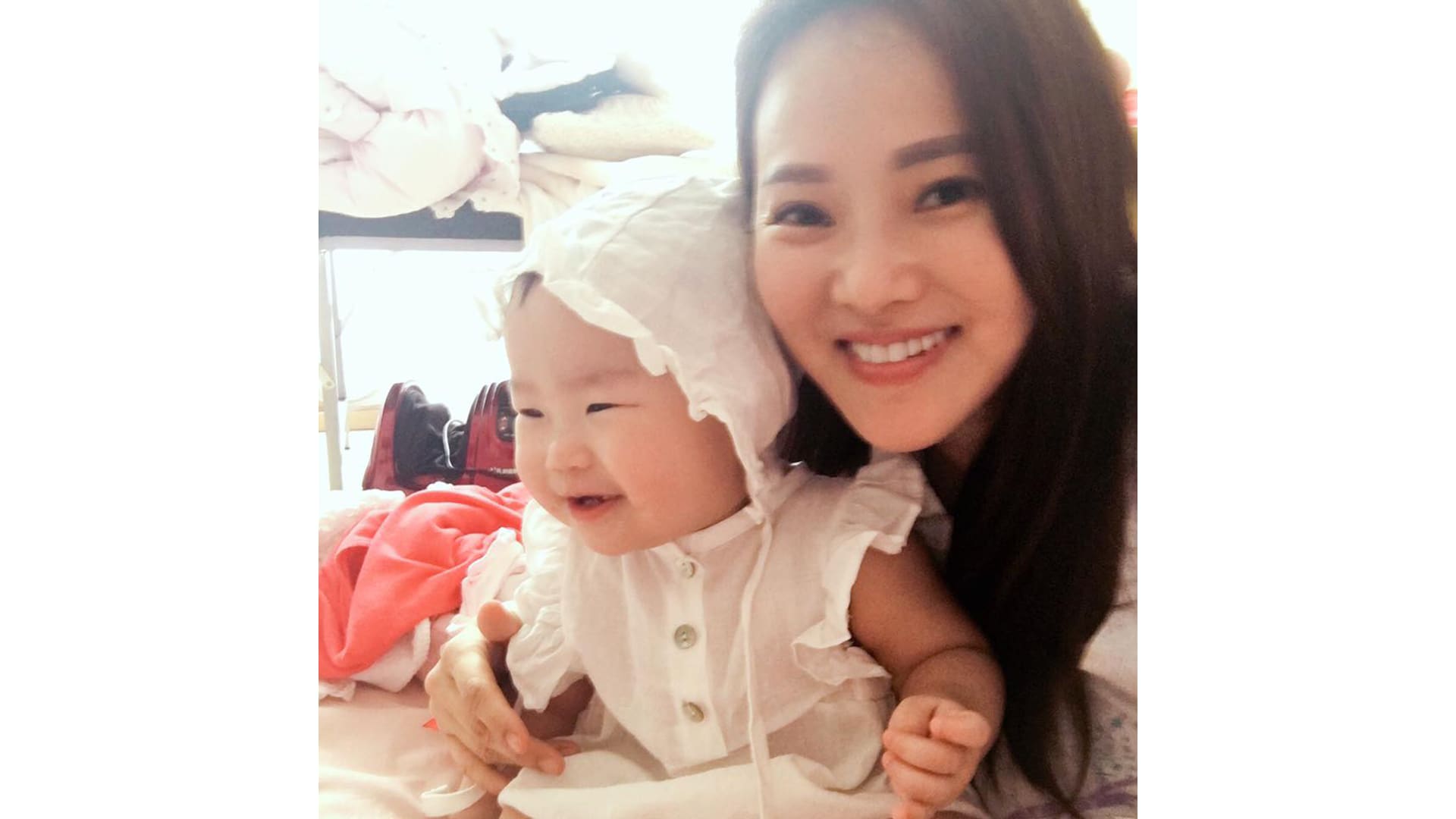 This is Annie Yi as a proud 46-year-old mama. We think she looks more like her kid's elder sister.