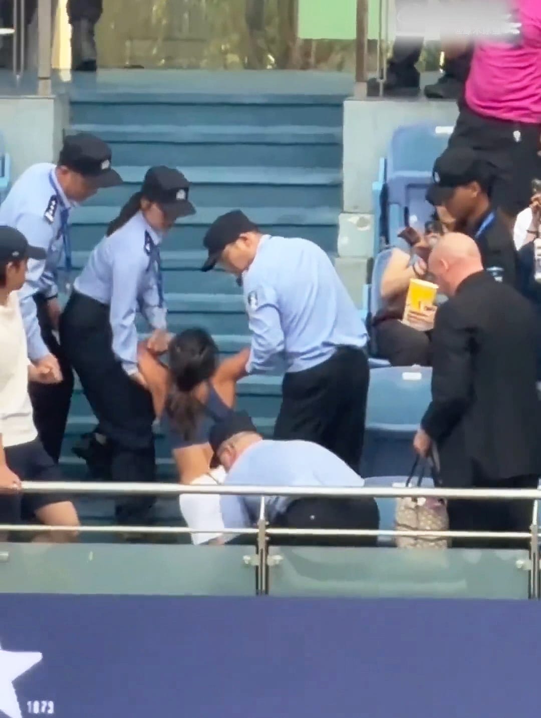 And when they tried to escort her out, she kicked up such a fuss that several officers had to drag her from her seat while she screamed: “I want to watch the game!” (Well, so does everyone else.)