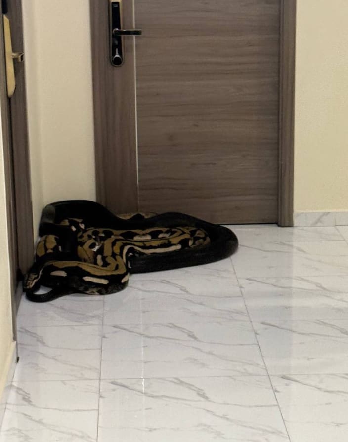 In a video circulating on the residents’ group chat, the snakes were seen slithering along the hallway floor right up to the lift.