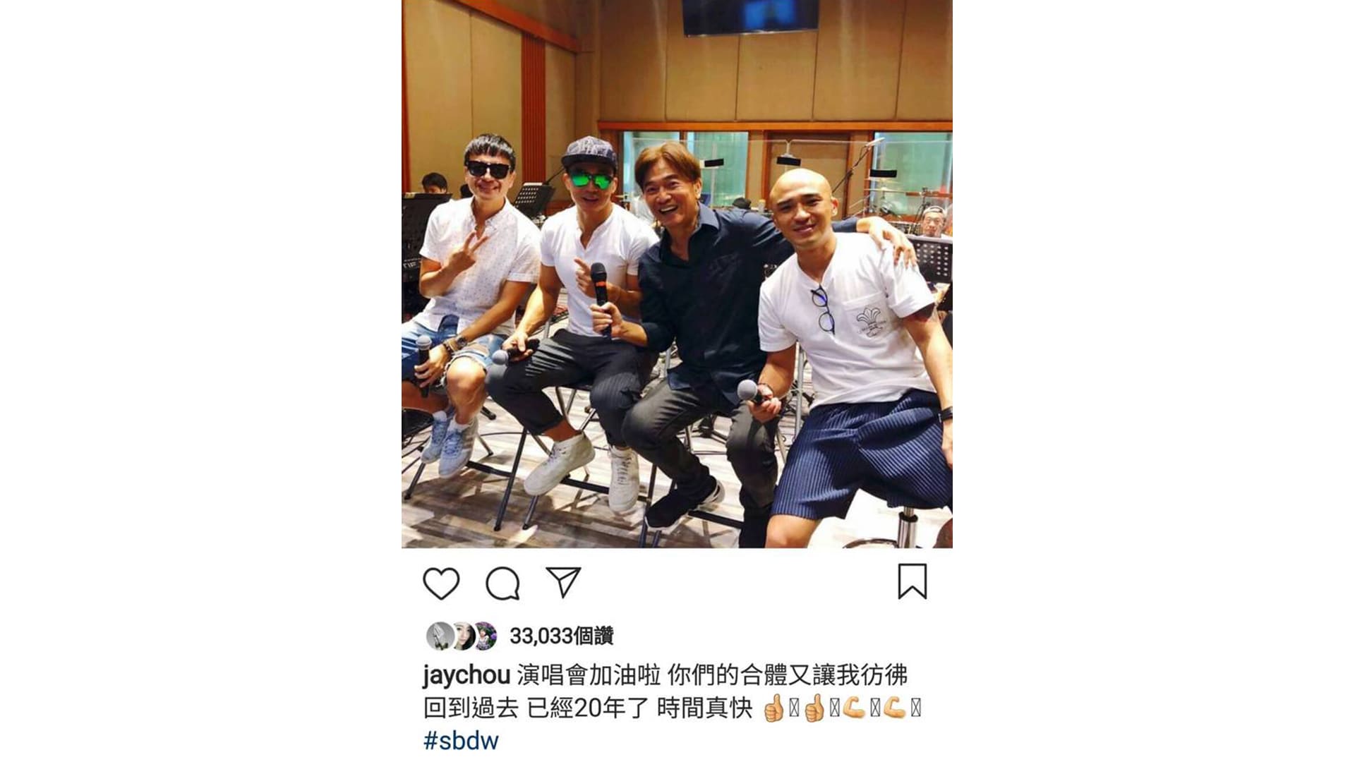 But last night (Jul 19), Jay posted on IG a photo of Jacky and his SBDW bandmates with caption: “Good luck for your concert! Your reunion takes me back to the past. It’s been 20 years. Time flies.” Jay, who wrote a number of SBDW’s hit songs like ‘Armageddon’, also added two thumbs up and two flexed biceps emojis.