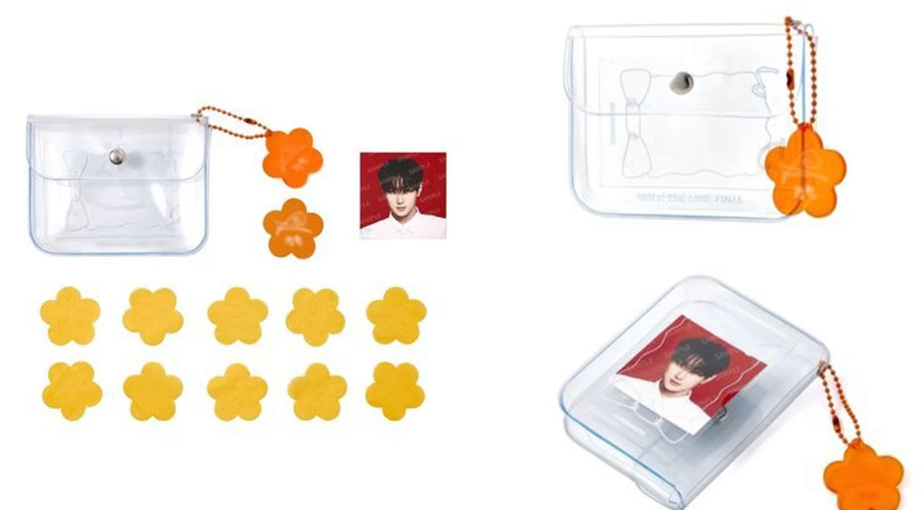 Of course, they aren't just selling bunches of confetti. The set does include individual member photo cards, a transparent storage pouch, an orange acrylic keychain, one autographed confetti piece, and10 regular confetti pieces.