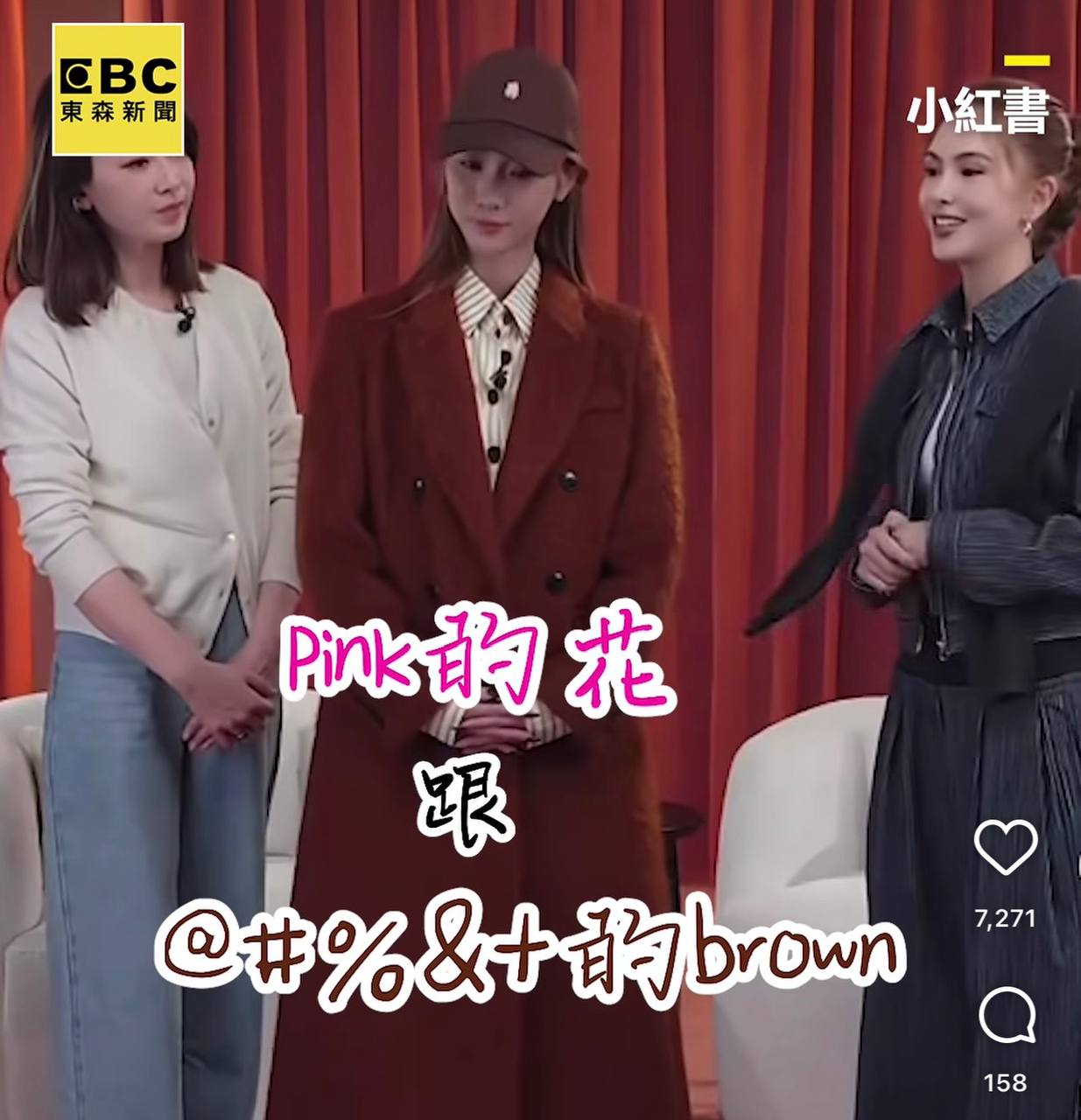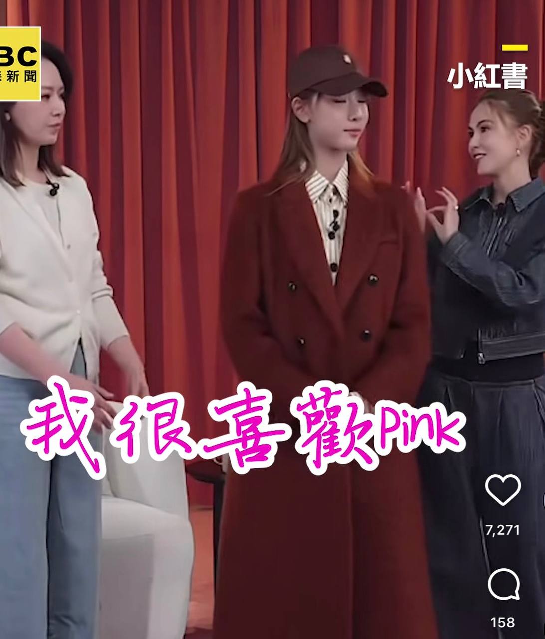 You see, she actually said "I really like" in Chinese, before switching to "pink goes with brown" in English, then back to Chinese again. The word "outstanding" was also singled out in English.
