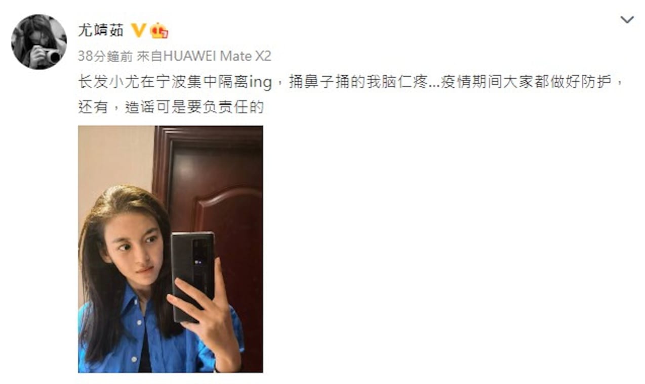 Jingru later also shared on her Weibo saying that she's currently quarantining in Ningbo, indirectly shutting down the allegations.