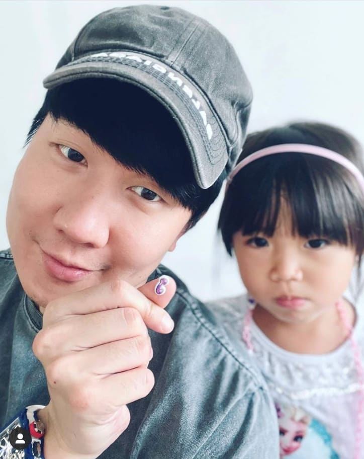 “Lovely afternoon with my god-daughter,” wrote the Mandopop king, who had a little purple sticker on his thumb. Was that a gift from the little munchkin?