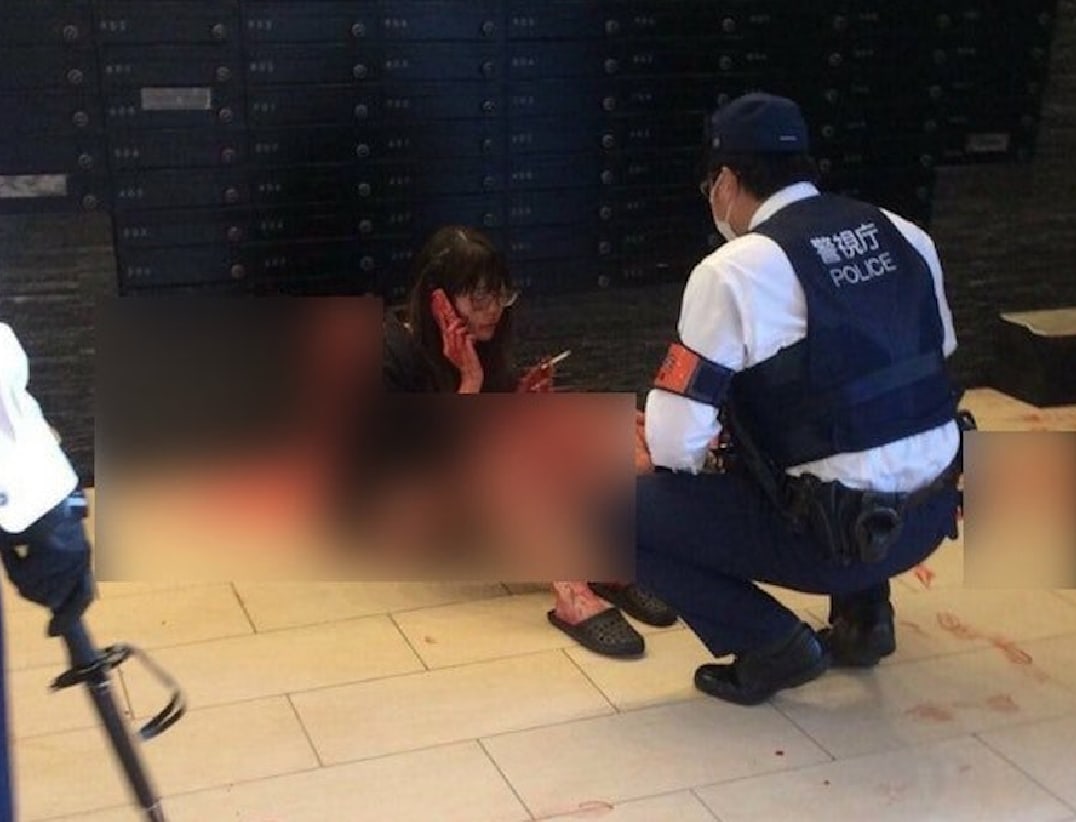 When the police arrived at the scene, Yuka, who was covered in blood, was seen calmly smoking outside the building.