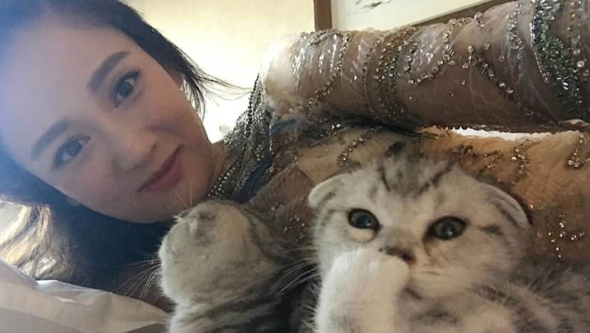 The actress’ 10-year-old pet cat “Rou Bao” (the name of her pet) was said to be undergoing an operation on the same day as said event and although she is very attached to it, she could not be by its side due to work commitments.