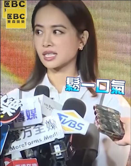 Her team quickly stepped in to block the question and Jolin heaved a sigh of relief, grinning awkwardly at the cameras.