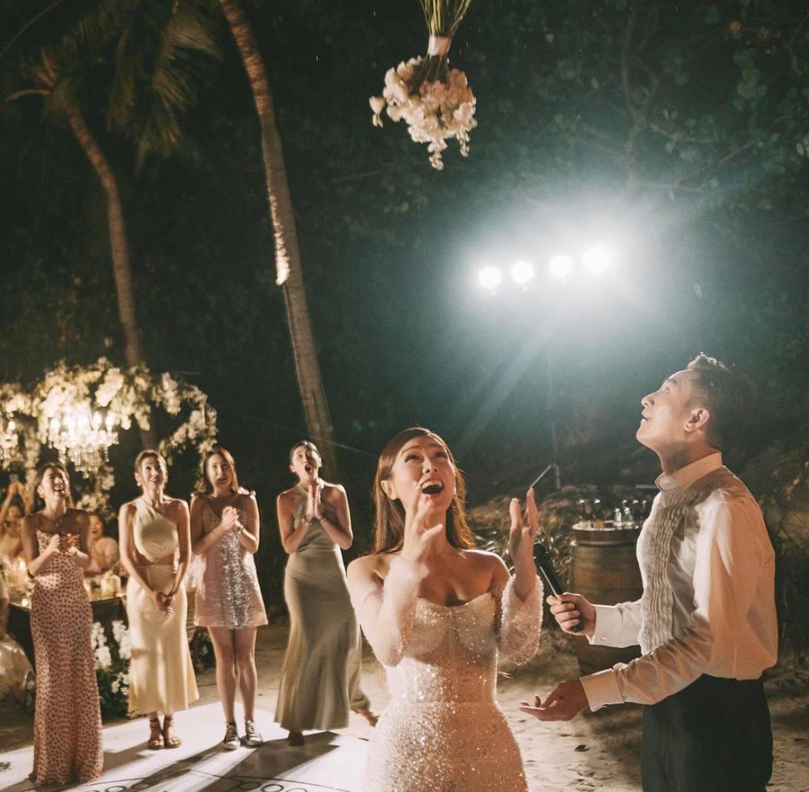 At the wedding were Kenneth and Roxanne’s celeb pals, including Natalie Tong, Jazz Lam, Stephen Wong, Hubert Wu, Lai Lok Yi, Sharon Chan, and Samantha Ko, who caught the bridal bouquet.
