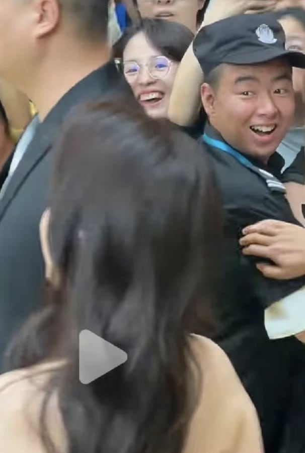 Just look at this bodyguard, who couldn't hide how happy he was to breathe the same air as Chinese actress Liu Yifei at work recently.
