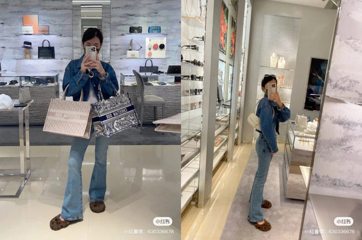 Recently, Chinese model Moka Fang aka Mrs Aaron Kwok posted a mirror selfie of herself holding two Dior Book Totes in different colours while shopping at the brand’s boutique.
