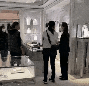 The woman standing on Na Ying’s left is believed to be her manager-slash-sister Na Xin, who remained silent along with Xiaotong as the star spoke to the boutique staff.