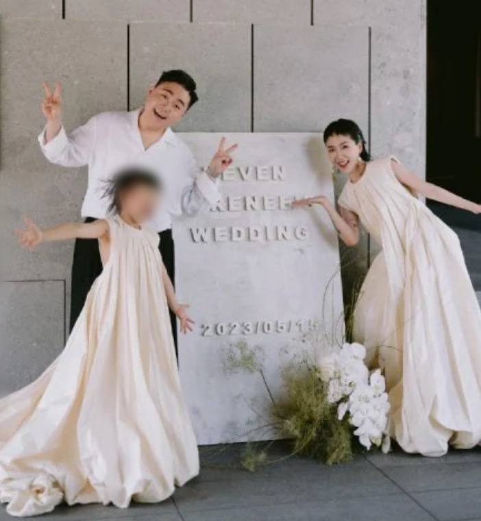 Ningrui’s nine-year-old daughter from a previous relationship joined the happy couple in most of the pics, and one in particular stood out to netizens.