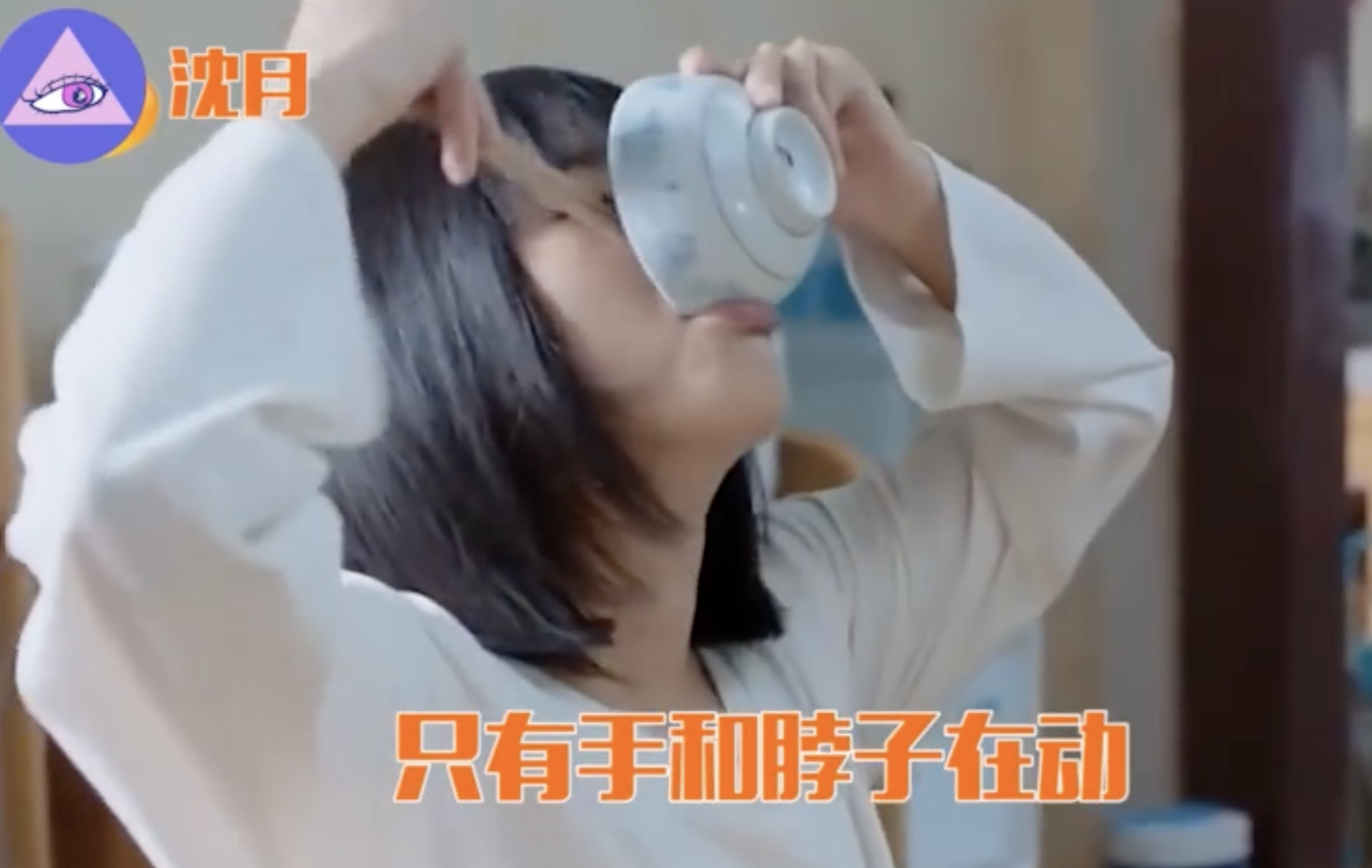 The actress not only 'ate' congee with a pair of chopsticks, her bowl was also noticeably empty.