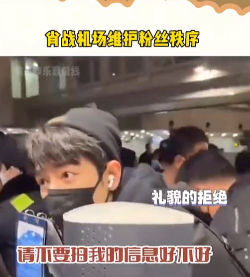Dressed in black with his face covered with sunglasses and a mask, Chinese actor Xiao Zhan was met with a combined mob of paparazzi and female fans as he walked into the airport.