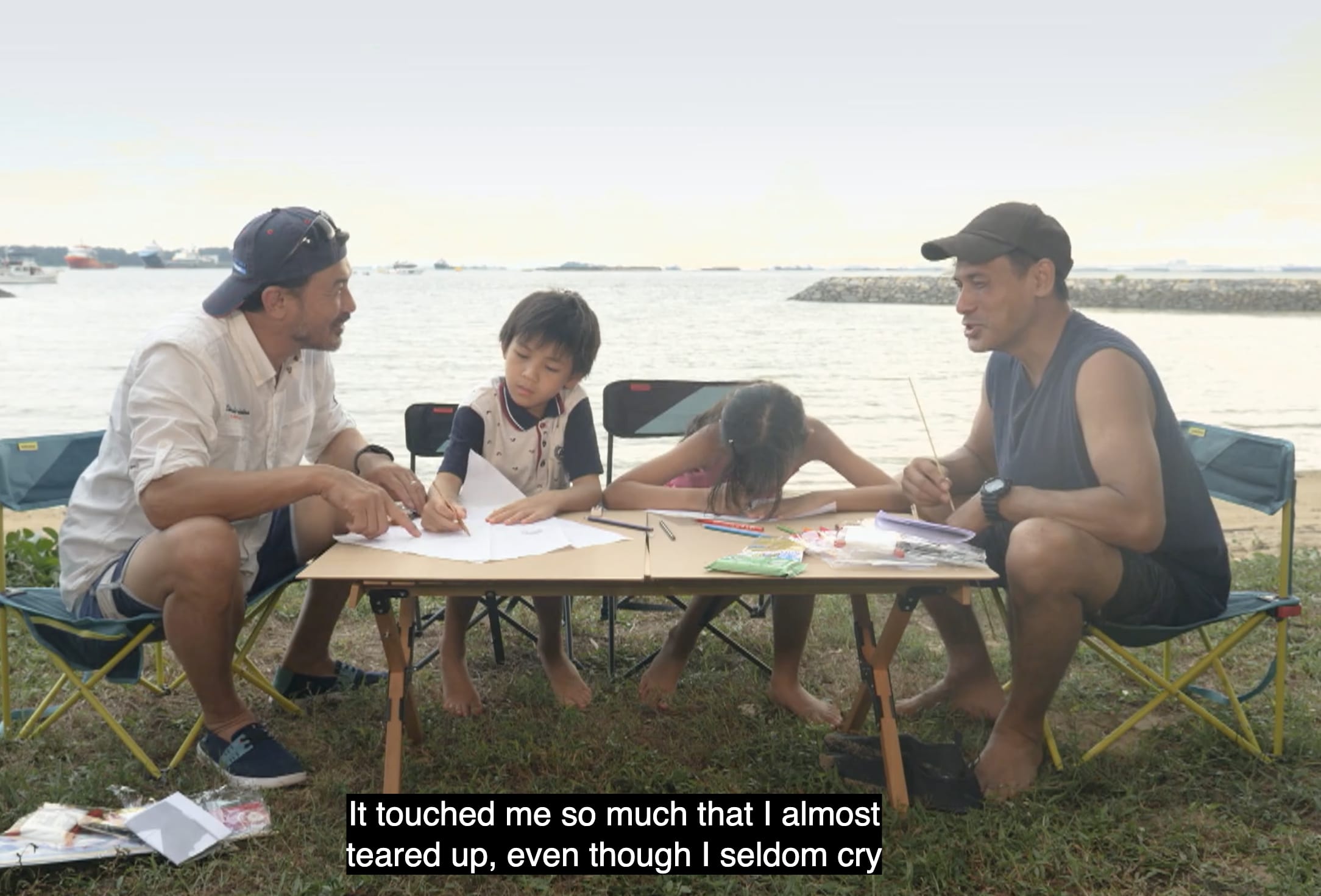 On A Night Under The Stars, host Darren Lim and his youngest son, Elliot, nine, took Allan and Enya on a camping trip to Hantu Island where the group snorkeled, went kite flying and made their own pizzas.