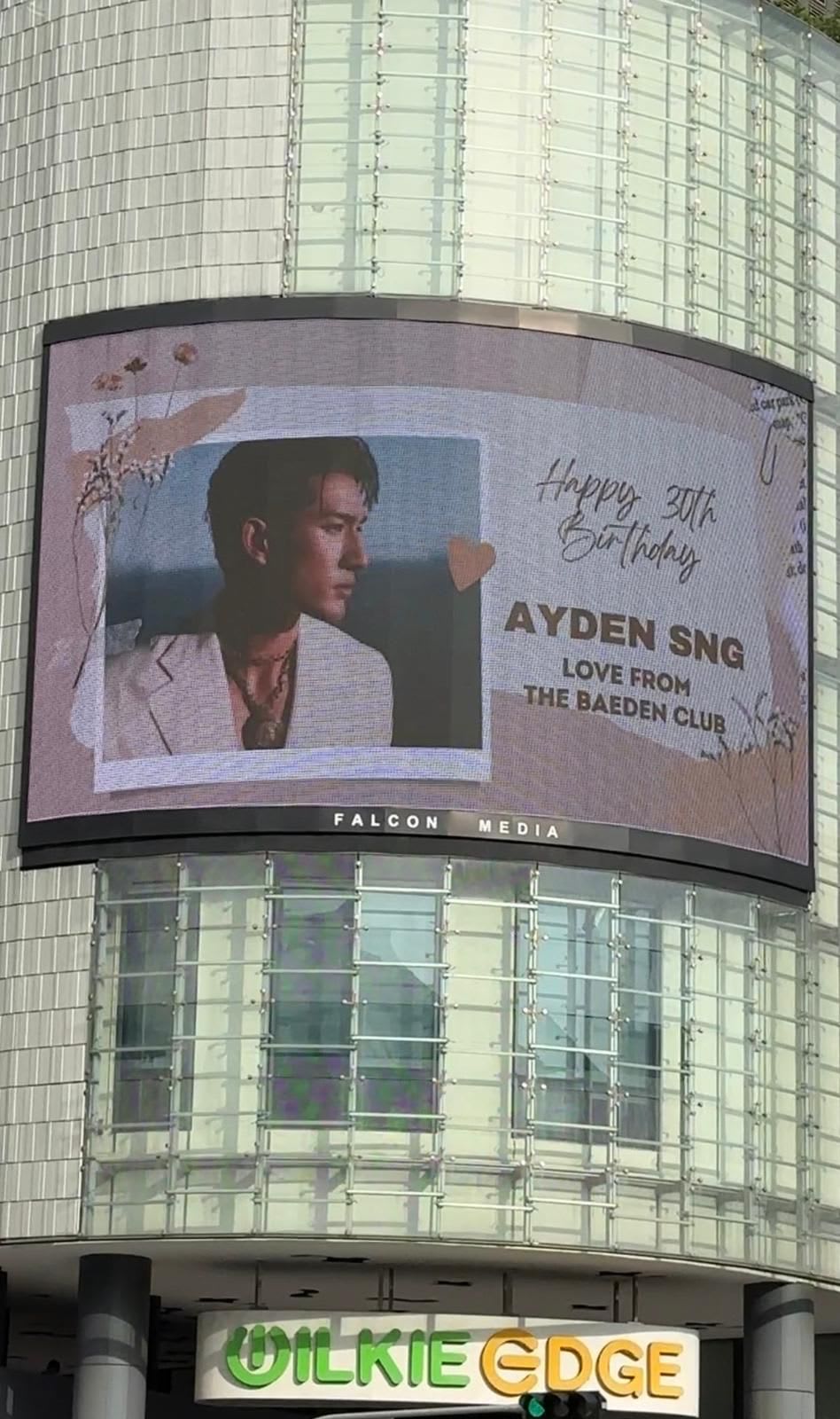 But we think Mediacorp actor Ayden Sng’s 30th birthday celebrations on Friday (Nov 17) were made extra special by his fan club, The Baeden Club, who bought out a digital billboard space at Wilkie Edge to flash out a birthday message.