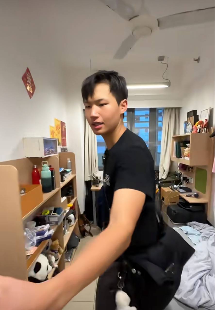 The student then agreed to take Ah Zhe on a room tour, but not before sharing that he's from Shenzhen and is currently a Year 3 student at the Nanyang Business School.