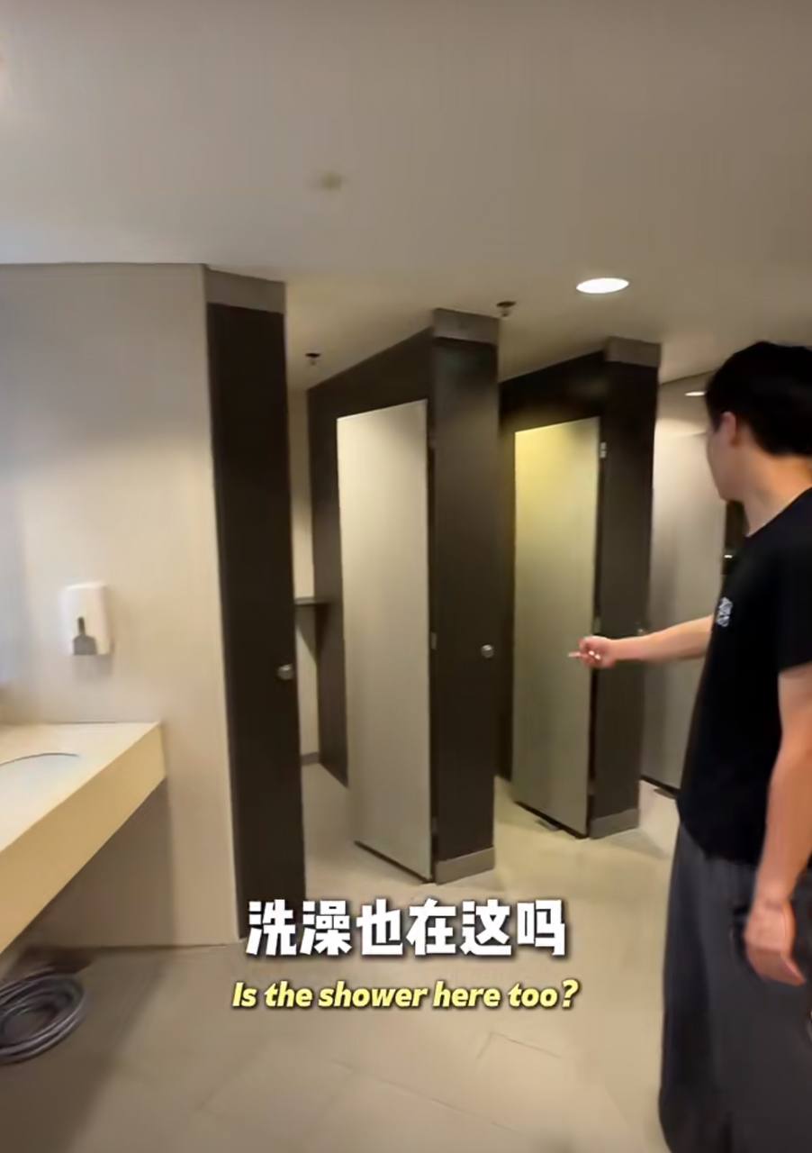 Next, he took Ah Zhe on a tour of the common toilet, which can only be entered with a key fob.