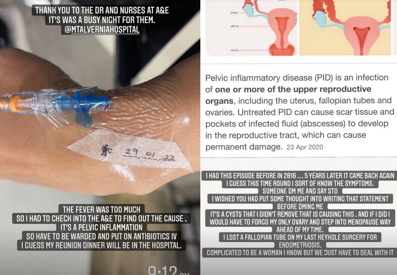 “I had this episode before in 2016… 5 years later it came back again,” Cynthia wrote in another IG Story. As it turns out, the actress is suffering from pelvic inflammatory disease, which is an "infection of one or more of the upper reproductive organs”.