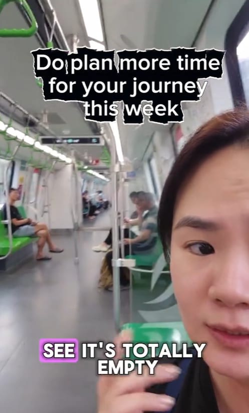TikToker @grace3947 posted a clip of herself sitting in a near-empty train on November 30 at 6:15pm, but said that Paya Lebar MRT station was packed.