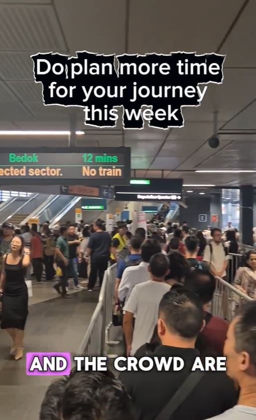 “[T]hey overmanage [the situation], and the crowd is all jammed downstairs. They are refusing to let people come up,” she says. According to her, only one escalator was in use at Paya Lebar MRT station, which didn't help the crowded situation at the interchange where the East-West Line meets the Circle line.