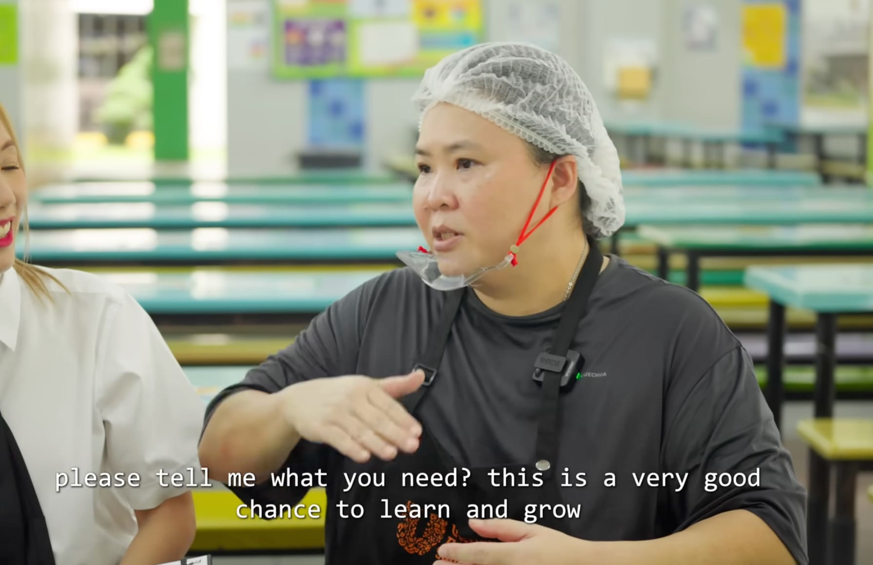 Joining Rayner and Qijia in their chat is experienced canteen vendor, Sally.