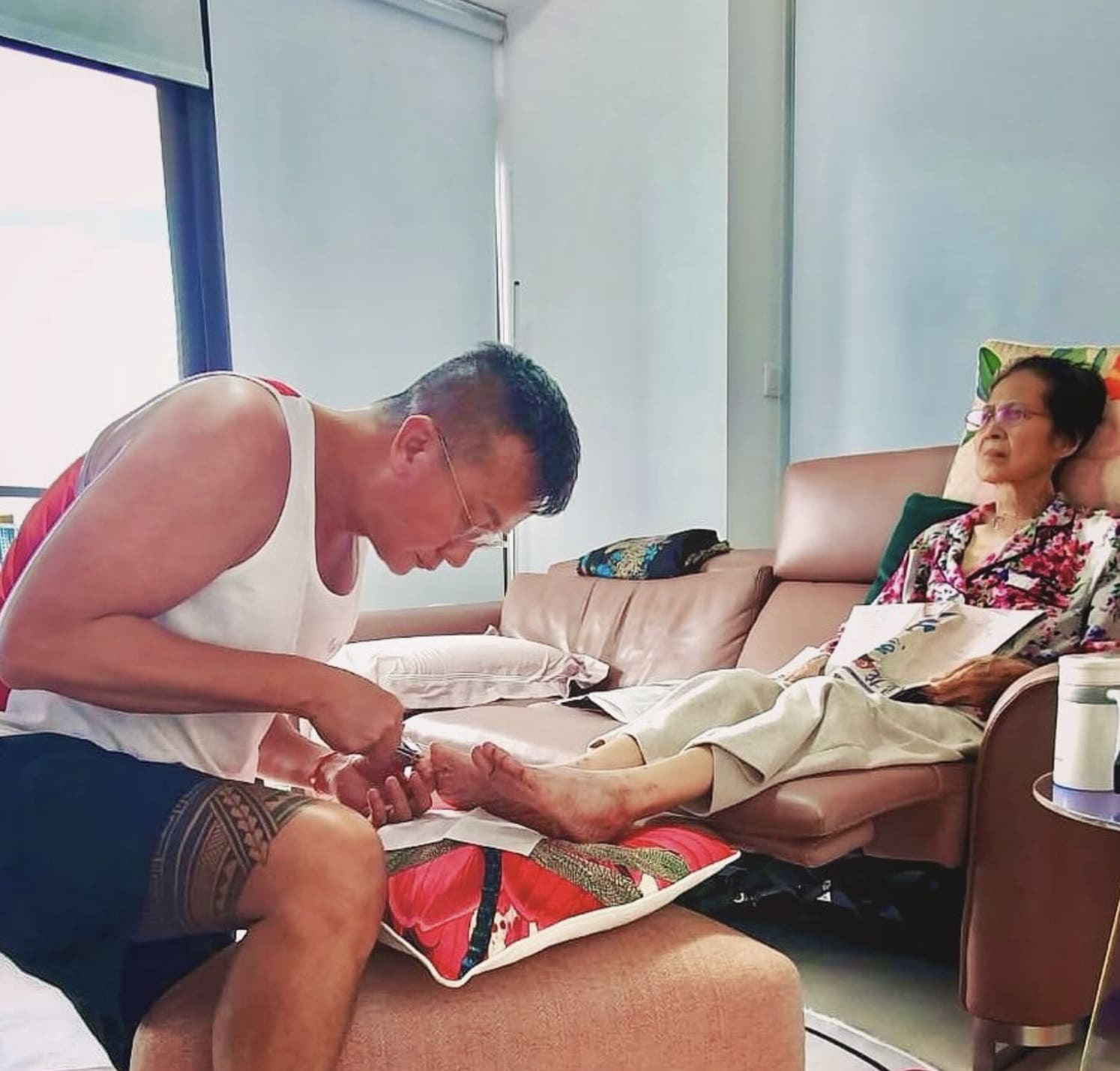 "When I was young, my mum would cut my nails for me. Now that I'm grown up, let me do it for you, Mum," he wrote at that time.