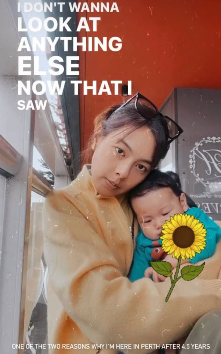 "One of the two reasons I'm here in Perth after 4.5 years," wrote the actress-host, who looked really at home cradling her friend's baby.
