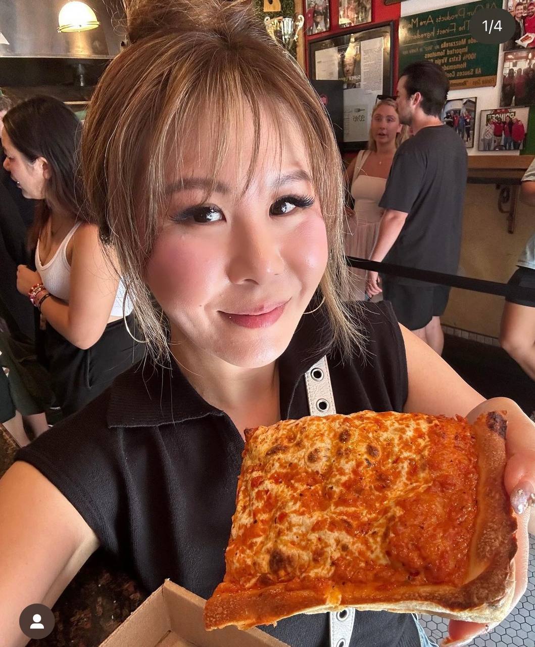 The Class 95 DJ, who is currently in the US for the Oppenheimer press junket, also seems to be having the best time feasting on pizza and bagels that have "won national acclaim".