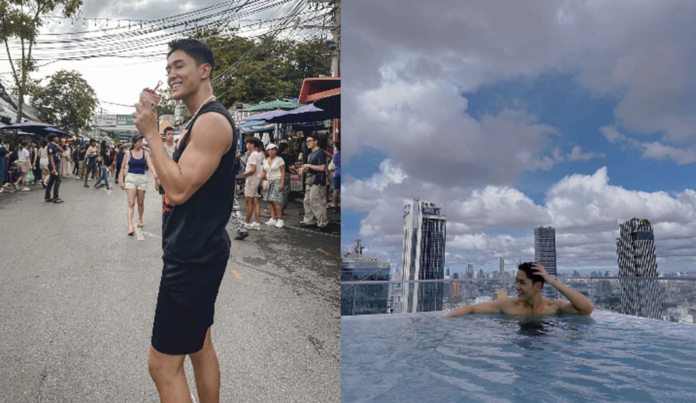 The Mediacorp hunk sure knows how to pose for the 'gram, as evident from his super hot pics at the Chatuchak weekend market and his hotel's swimming pool.