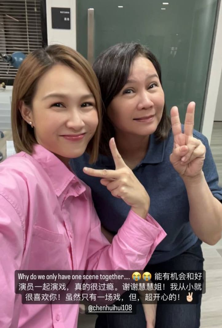 "Why do we only have one scene together..." lamented Ya Hui, who posted a selfie she took with former Mediacorp actress Chen Huihui.