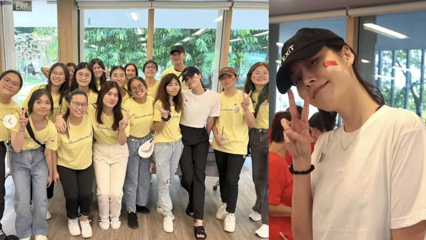 Carrie Wong and her fanclub did a spot of volunteering on National Day.