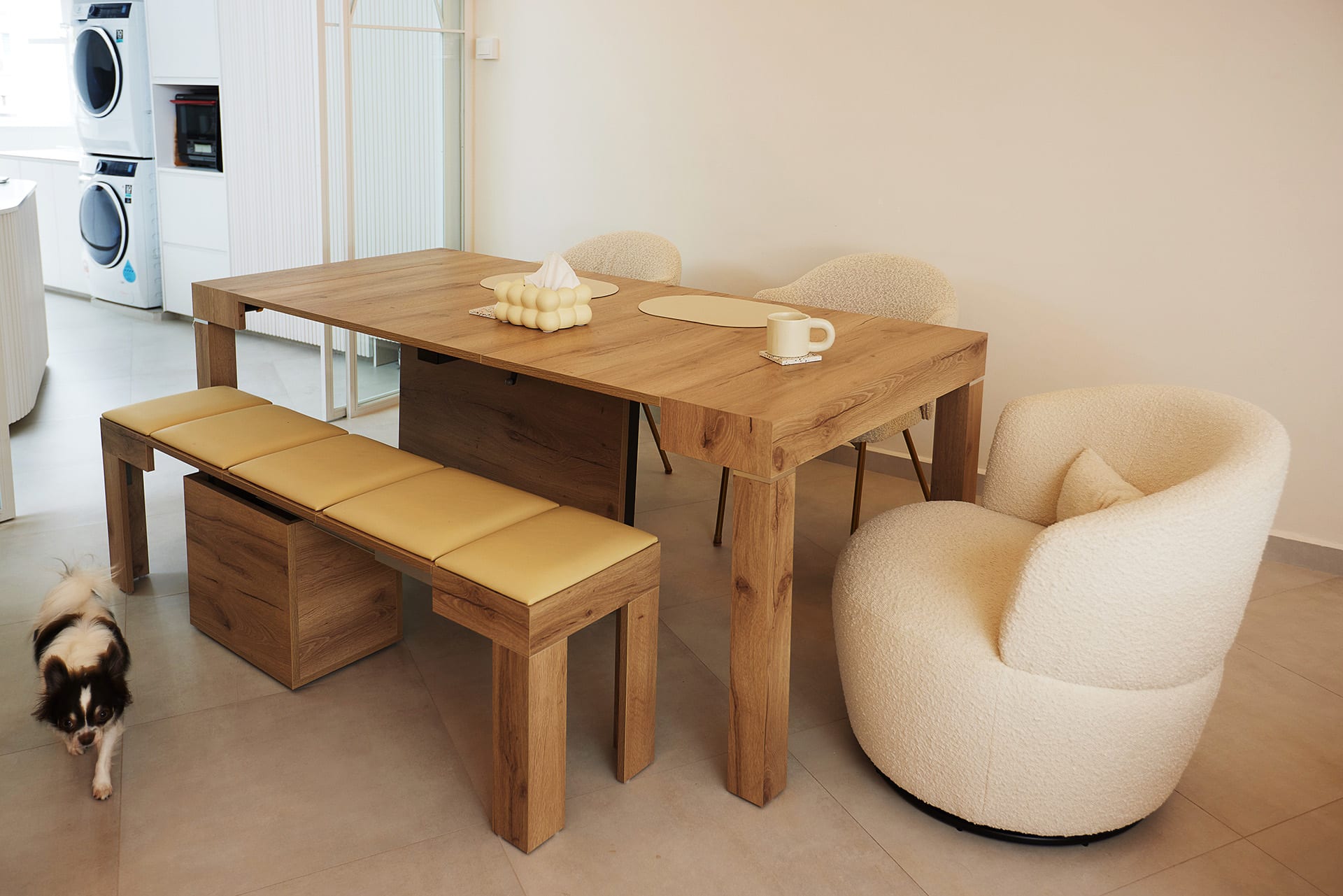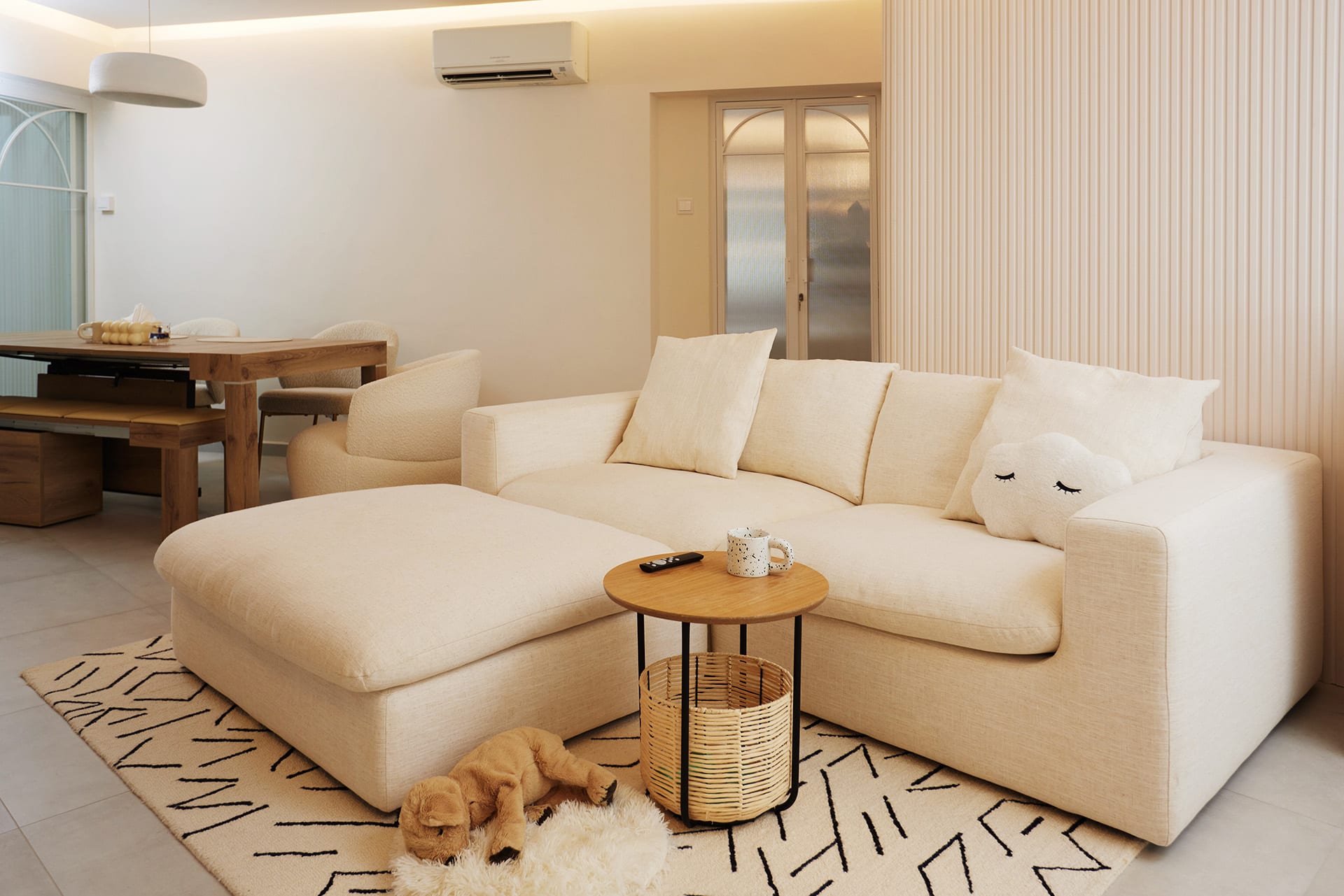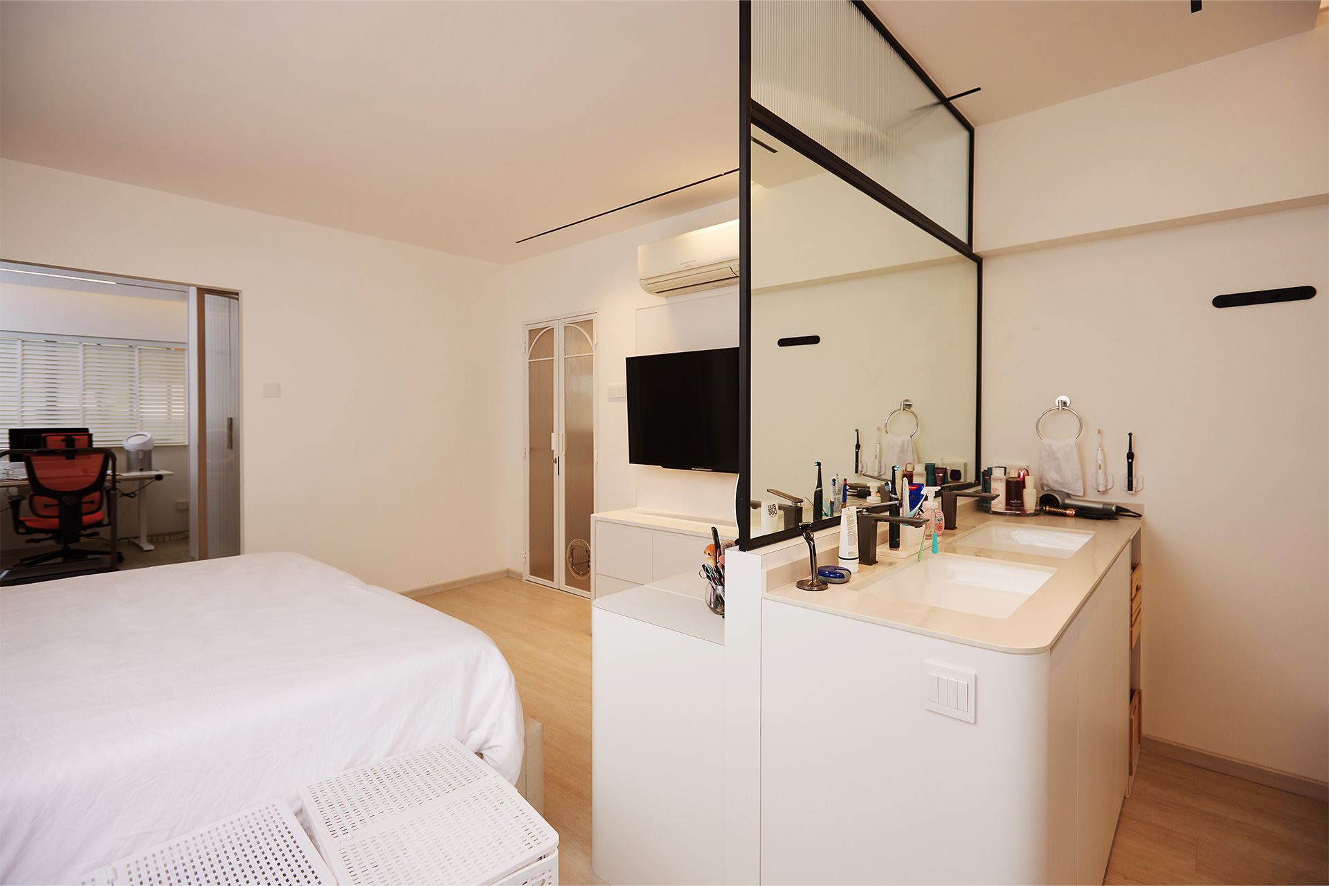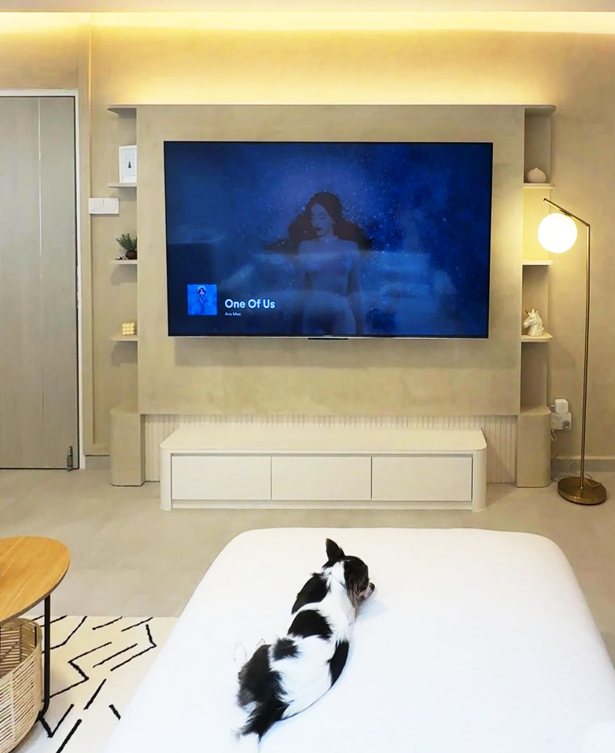 “Our BTO flat was delayed due to Covid. We didn’t want to continue staying in the condo we were renting ‘cos the space was a bit small and rental rates are crazy now, so when we found out my mother-in-law, who is living somewhere else, was planning to renovate this flat and sell it, we offered to take care of the reno and she let us stay for free. It’s a win-win for everyone,” shares James.