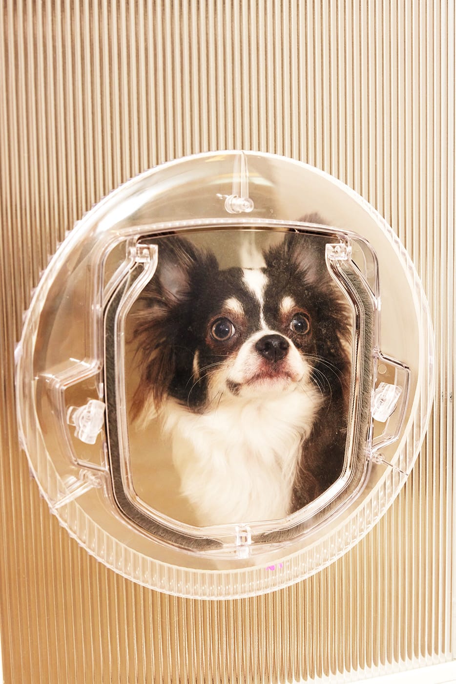 They added a dog door so their pooch Moon can access the room when the doors are shut.