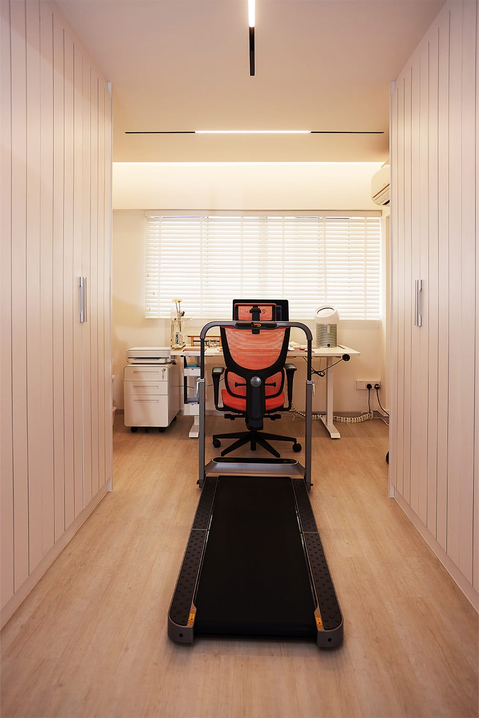 “It looks very weird to have two adjacent doors, so we designed the study entrance like a hidden door. I also felt it would be quite cool to create a hidden man cave,” says James.