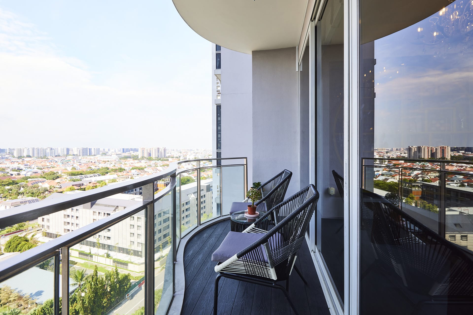 Besides the view, Jaspers was also very drawn to the six-year-old apartment’s spacious curved balcony and the privacy it affords. The unit comes with a private lift and Jaspers admits he was sold when the elevator doors opened.