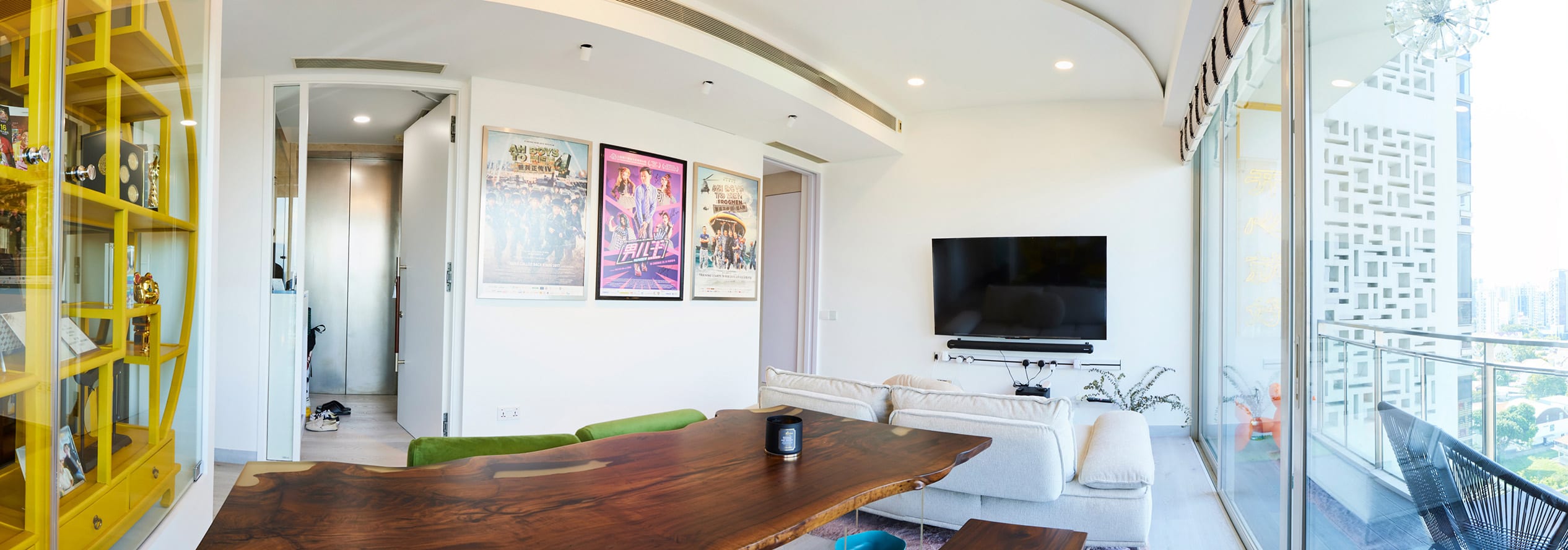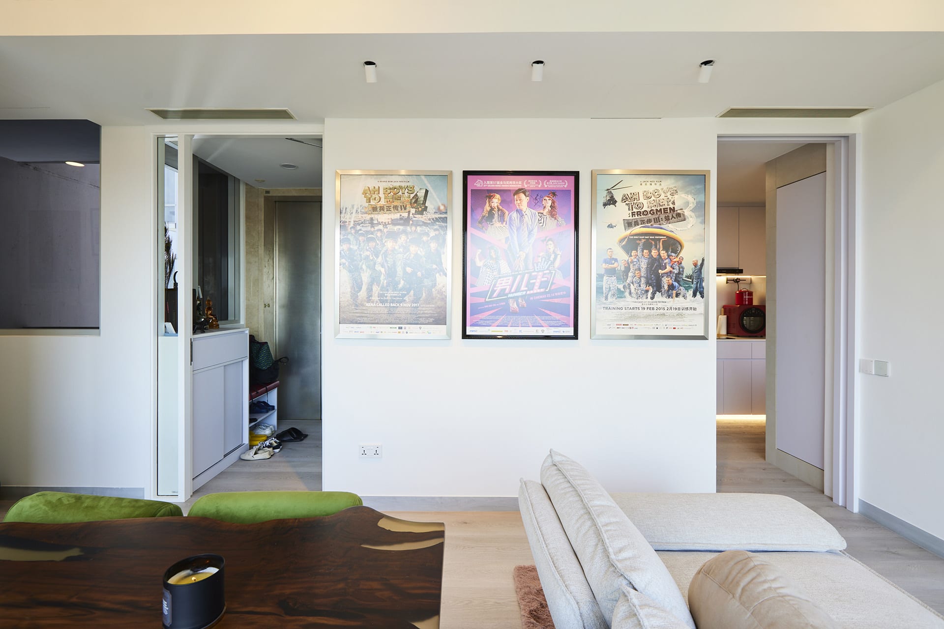The living room and hallway walls, which are fengshui powerspots, have been transformed into gallery walls for Jaspers to “showcase my movie posters to myself”. He had 13 posters framed up so he can switch things around depending on his mood.