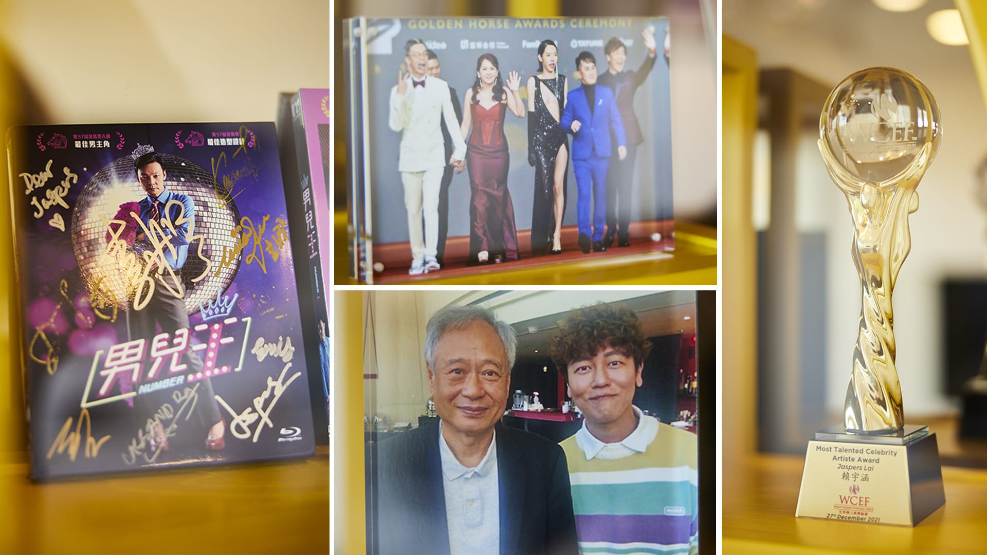 Calling it his “dream board”, he displays things that are meaningful to him like his awards, family photo, and pics of him at the 2020 Golden Horse Awards, where his film Number 1, for which he wrote the script, won Best Make-up and Costume Design and Mark Lee was up for Best Actor. “I left the top part of the shelf empty to motivate myself. One day if I win a Golden Horse award I will put it there,” he smiles.
