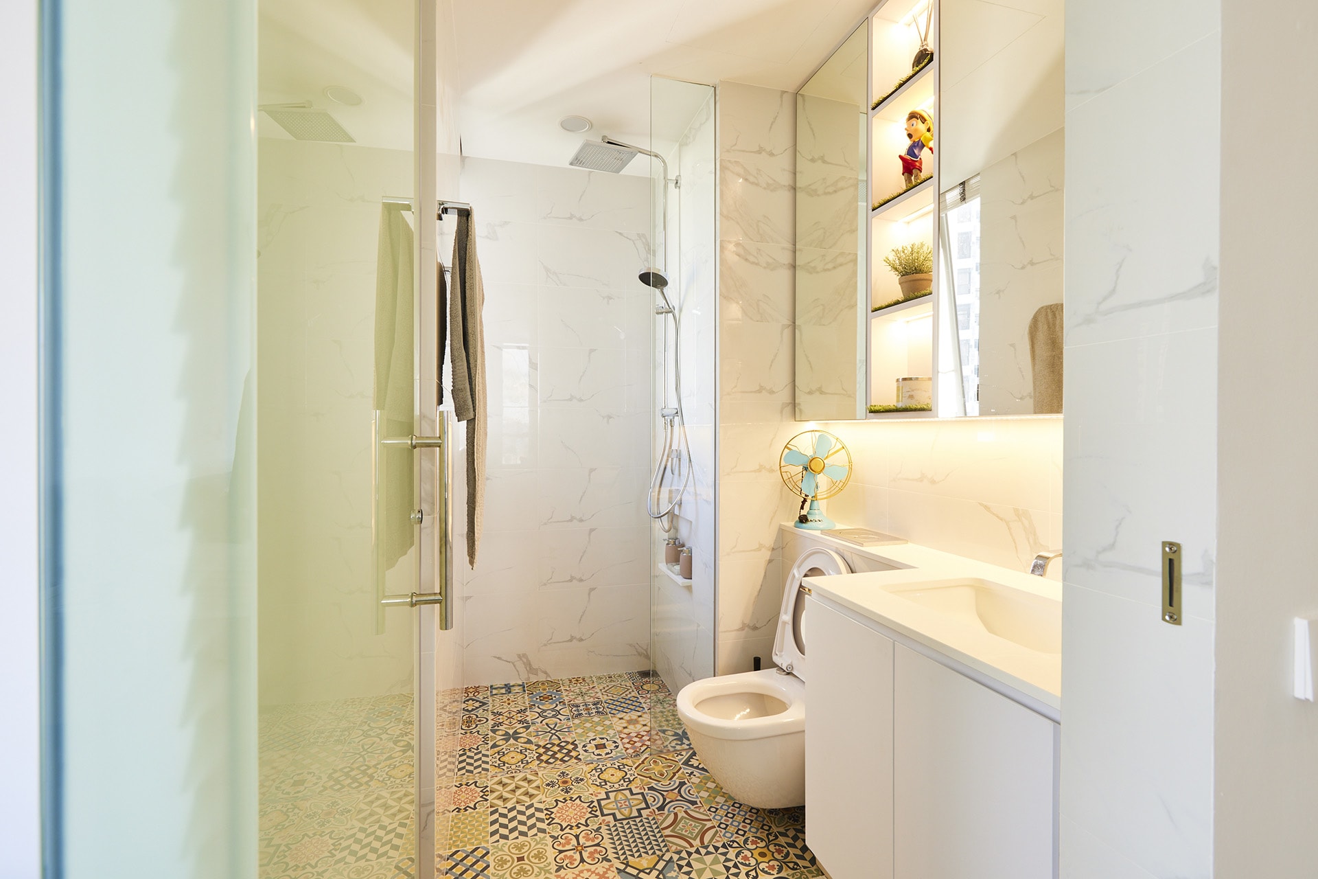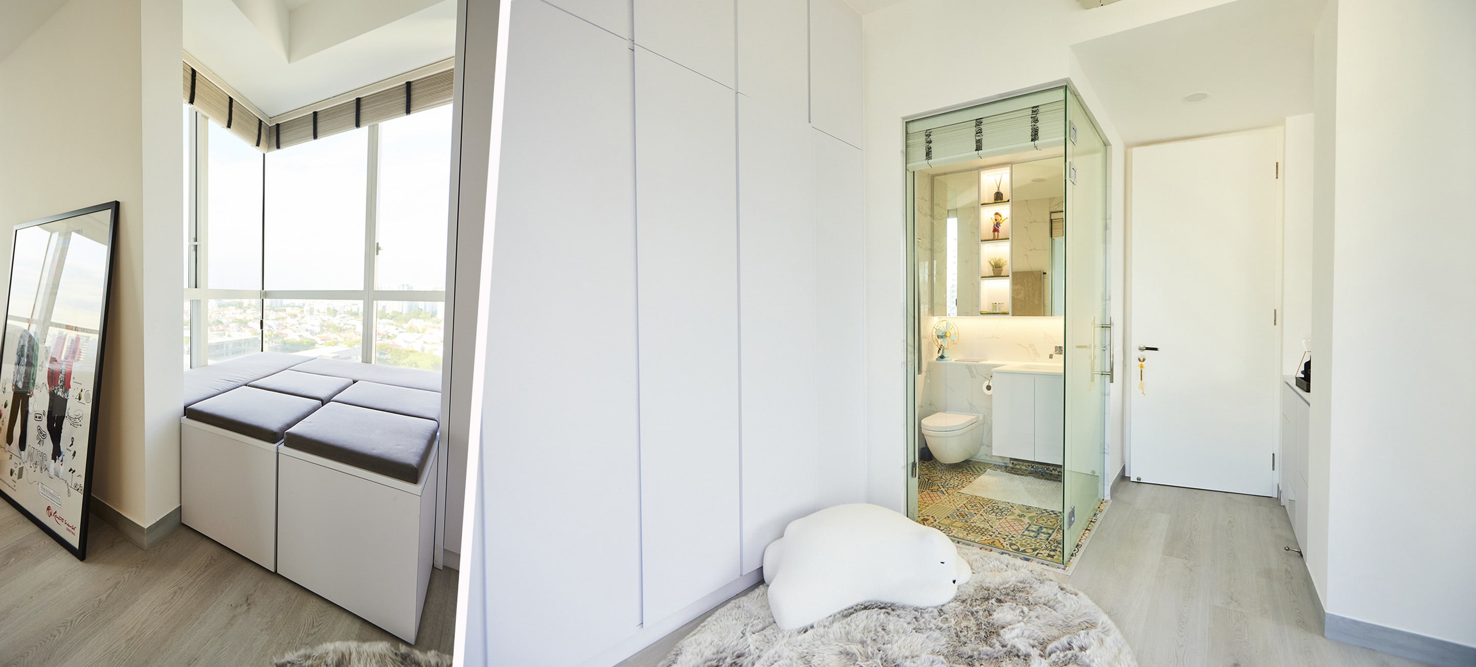 “It’s a pity I can’t have this as my bathroom. It’s bigger and has a better view than the other one,” he sighs. “But I kept the toilet bowl just in case we need to reinstate it when I sell the condo. Don’t waste, right?”