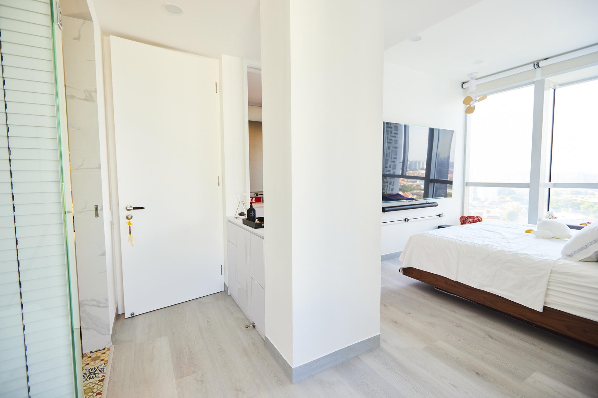 Having completely see-through glass doors for my toilet and also keeping the original master bathroom. I argued with my dad over these and many other things, but at the end of the day, they are small things. I understand why my dad wants to stick closely to fengshui, but I am also stubborn, so I will try to negotiate with my fengshui master. For example, my fengshui master said that I do not need a sofa, but I really fought for it ‘cos the TV, bed, sofa and balcony are very important to me. They are essential to my life and my work. I ended up getting it in JB.