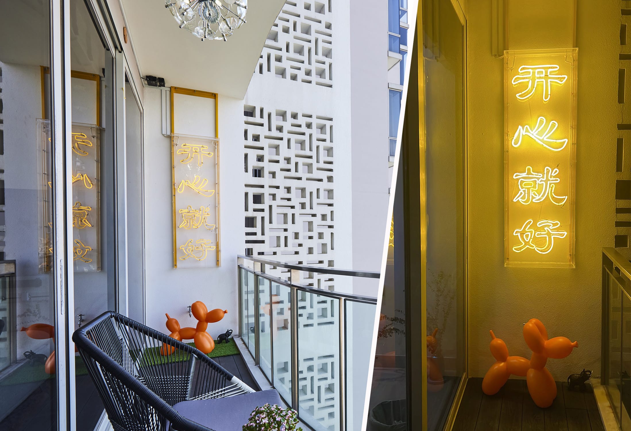 We love the personalised touches like the neon sign in the balcony. Aren’t you afraid that people know where you live?