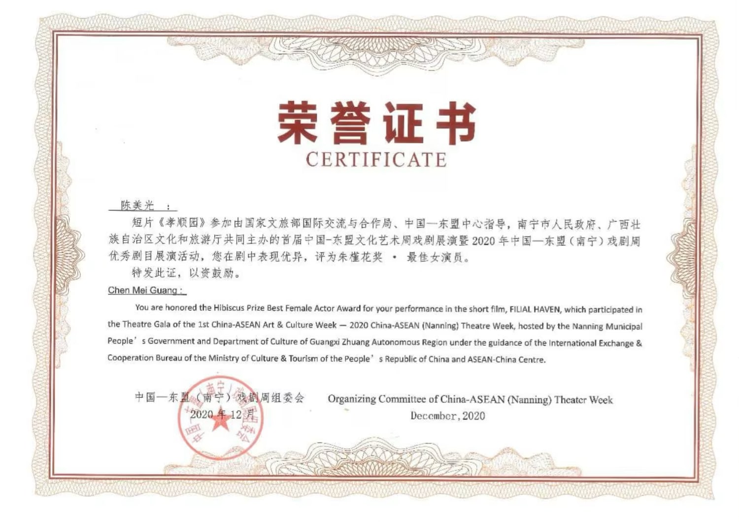 Back in December 2020, local short film Filial Haven was presented at the inaugural China-ASEAN Art & Culture Week in Guangxi, China — where it won three major awards: Best Producer, Best Actor, and Best Actress.