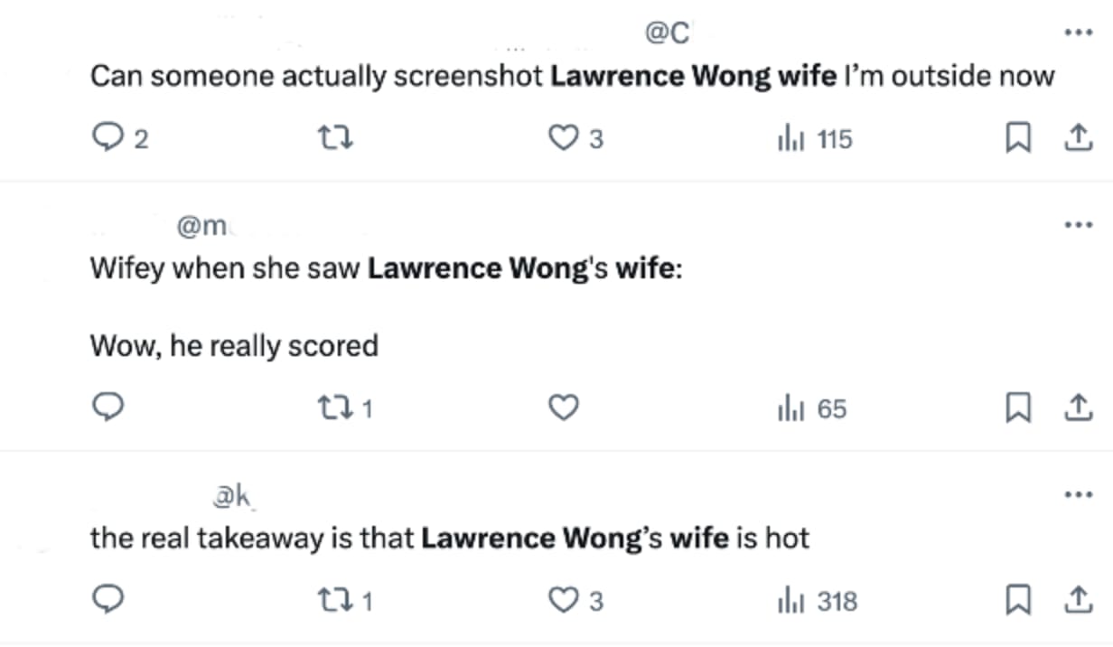 "Can someone screenshot Lawrence Wong's wife, I'm outside now," requested one netizen.