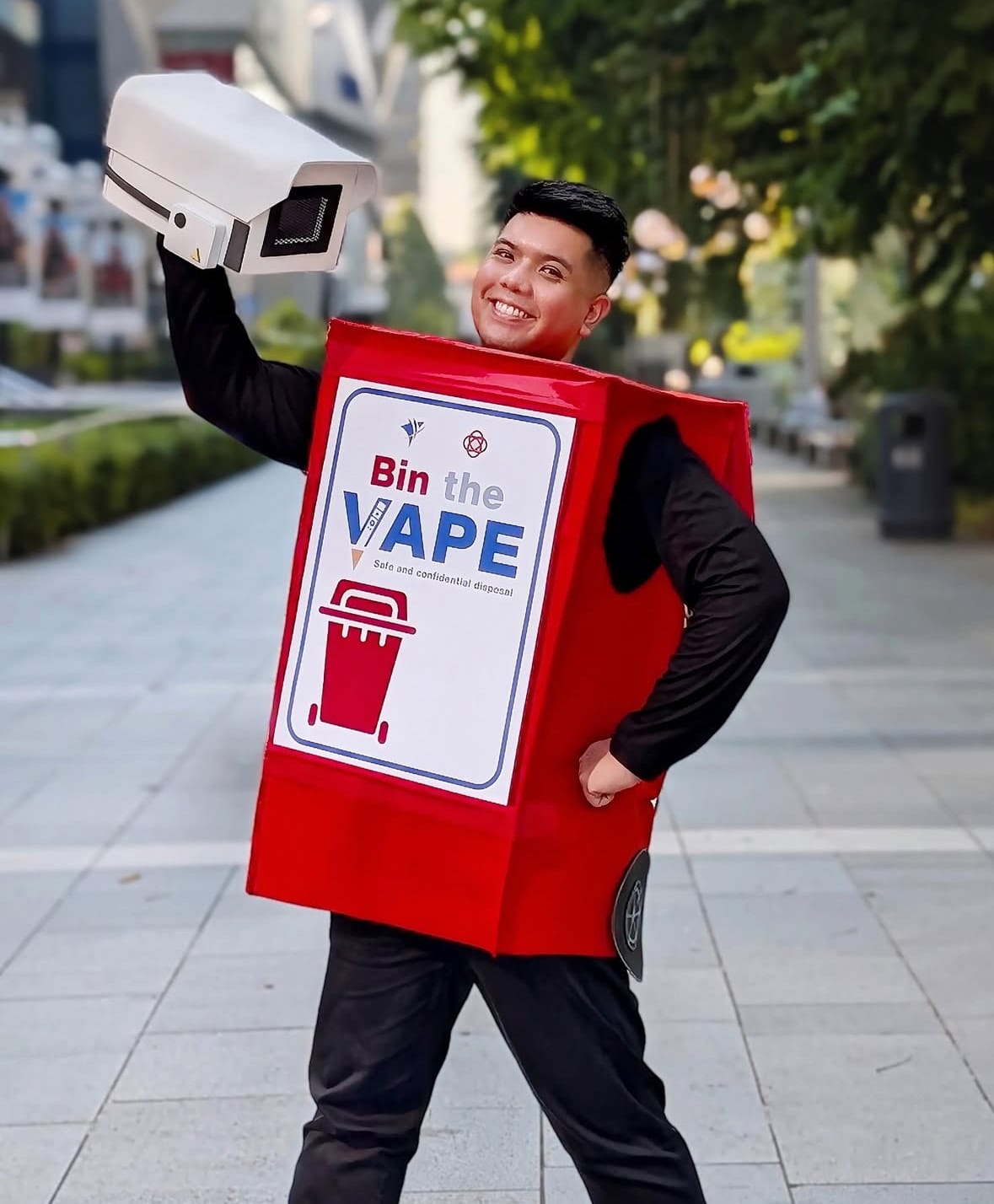 Singapore Content Creator Dresses Up As Vape Bin For Halloween Using Materials He Bought With SG60 Vouchers