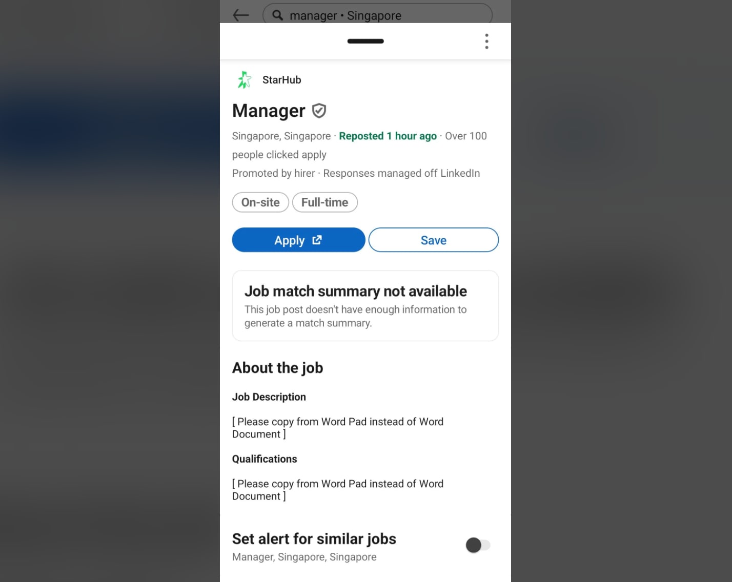 However, as of press time, it appears that the listing can no longer be found on StarHub's LinkedIn page.